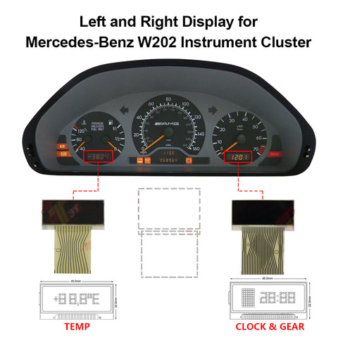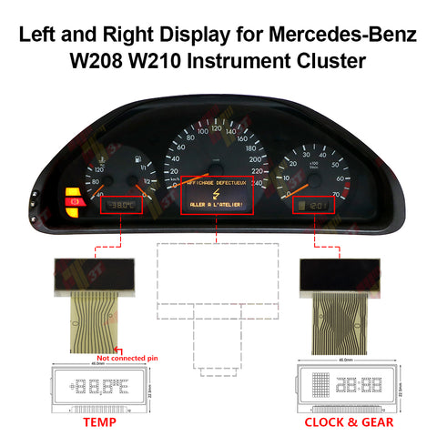 Left and Right Display for Mercedes W202 W208 W210 R170 Instrument Cluster   Application:Mercedes C-Class W202 (1997-2001)Mercedes CLK-Class W208 (1997-2003)Mercedes E-Class W210 (1995-2003)Mercedes SLK-Class R170 (1996-2004) Display on...