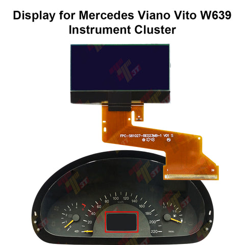 Display for Mercedes Viano Vito W639 Instrument Cluster   Application:Mercedes Vito W639 (2004-2008)Mercedes Viano W639 (2004-2008)   Consists screen with a flat connector to be soldered to the...